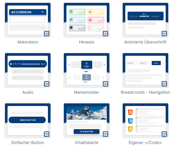 Große Auswahl an CMS-Elementen